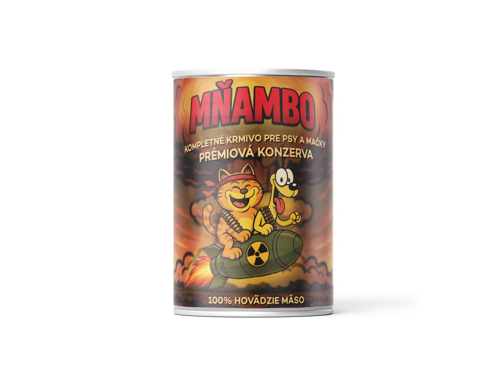 MNAMBO je prémiová mäsová konzerva pre psov a mačky vyrobená zo 100 % hovädzieho mäsa. Bez konzervantov a bez zbytočných prísad. Vyrobené na Slovensku v Rimavskej Sobote.